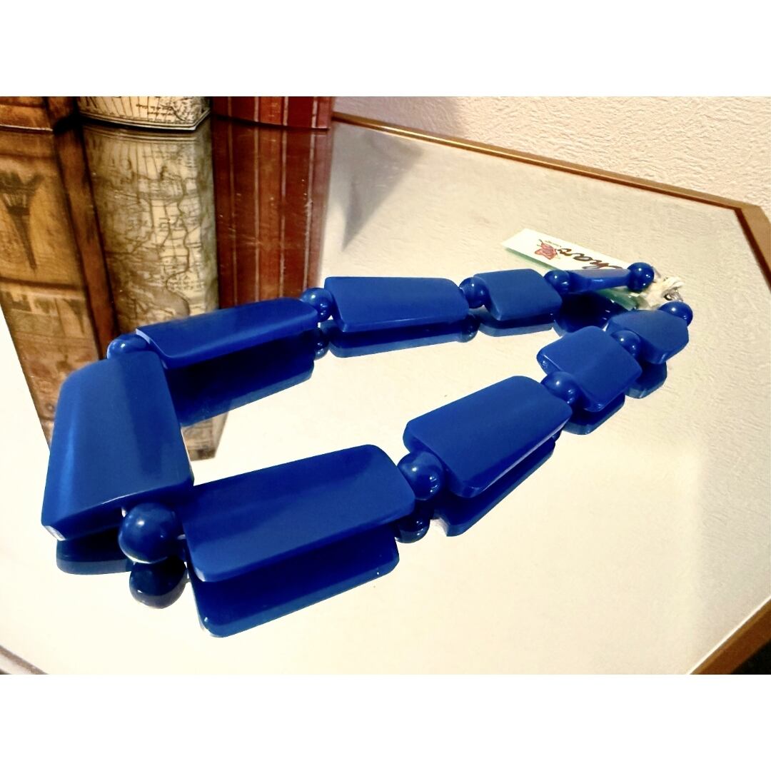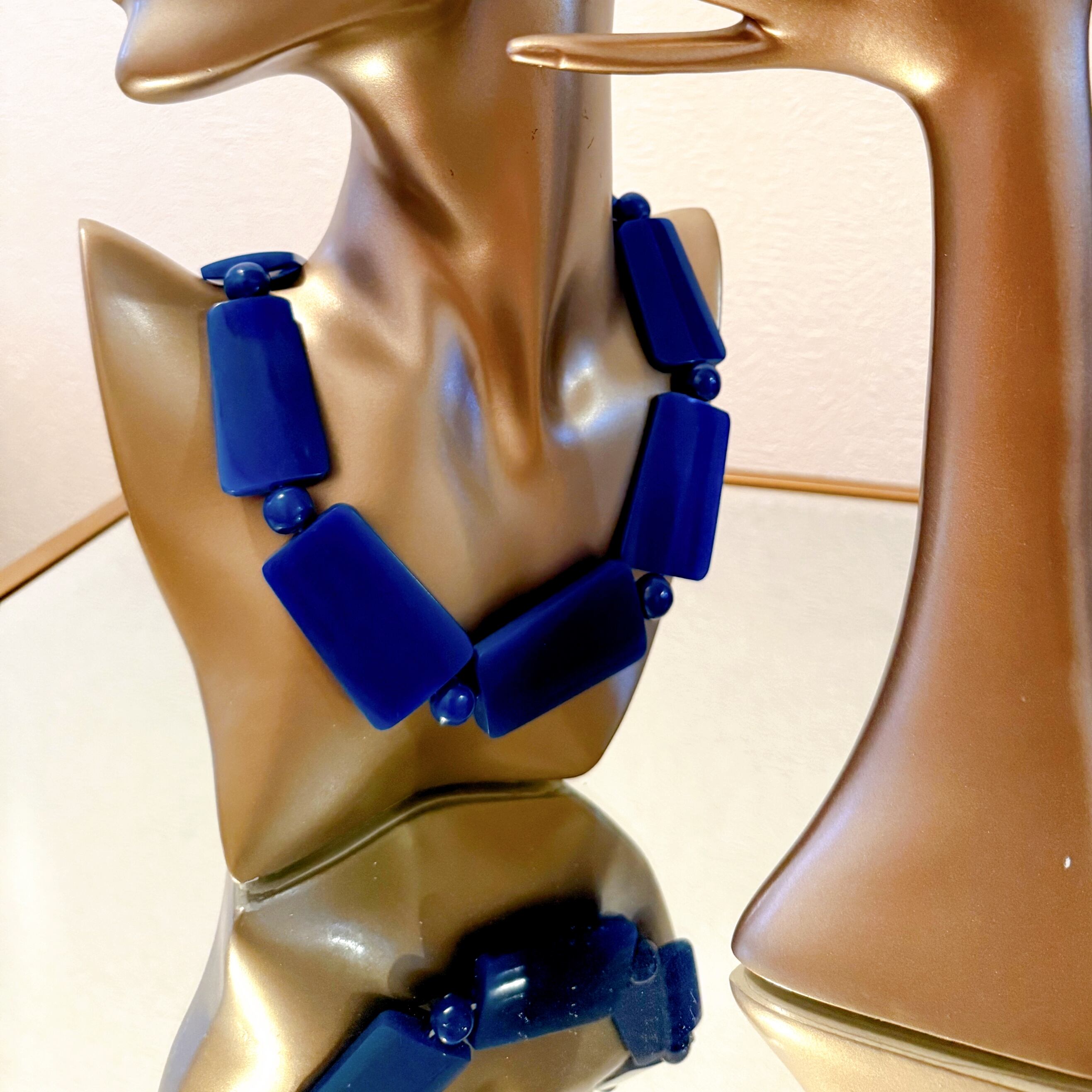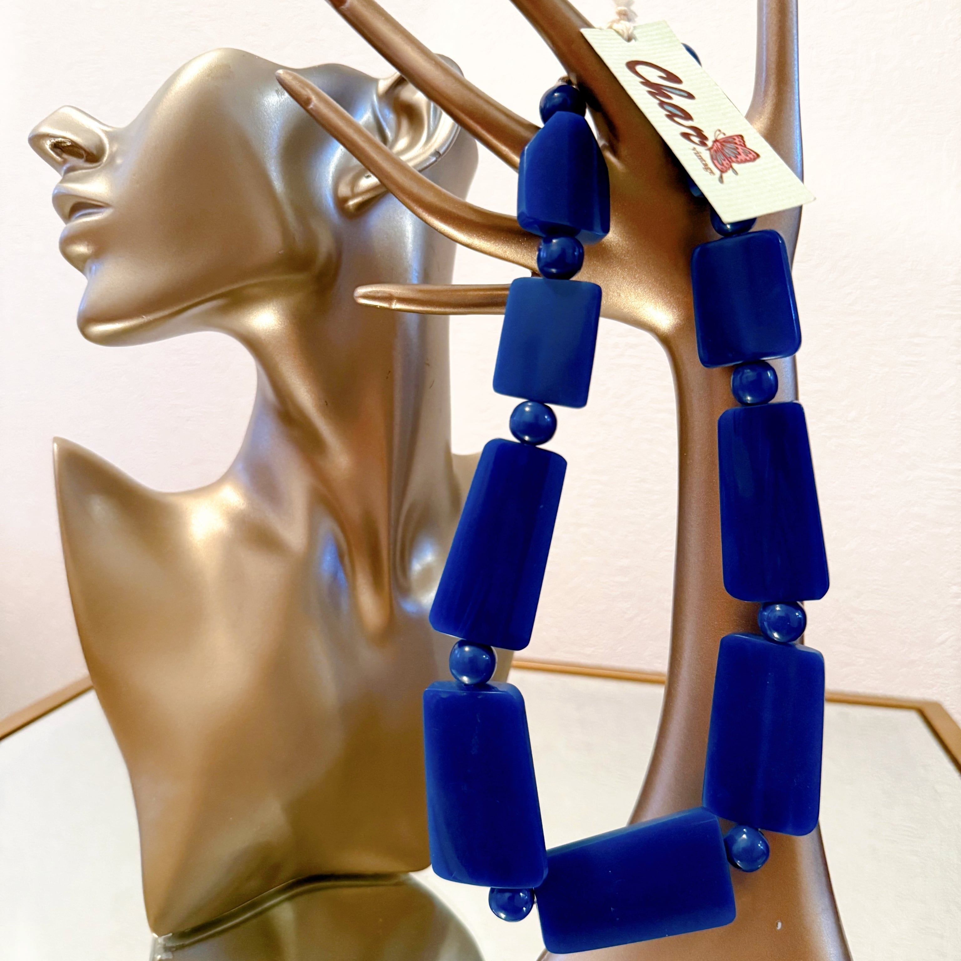シンプルな装いにも個性を加える鮮やかなクラシカルブルーの大ぶりネックレスです。