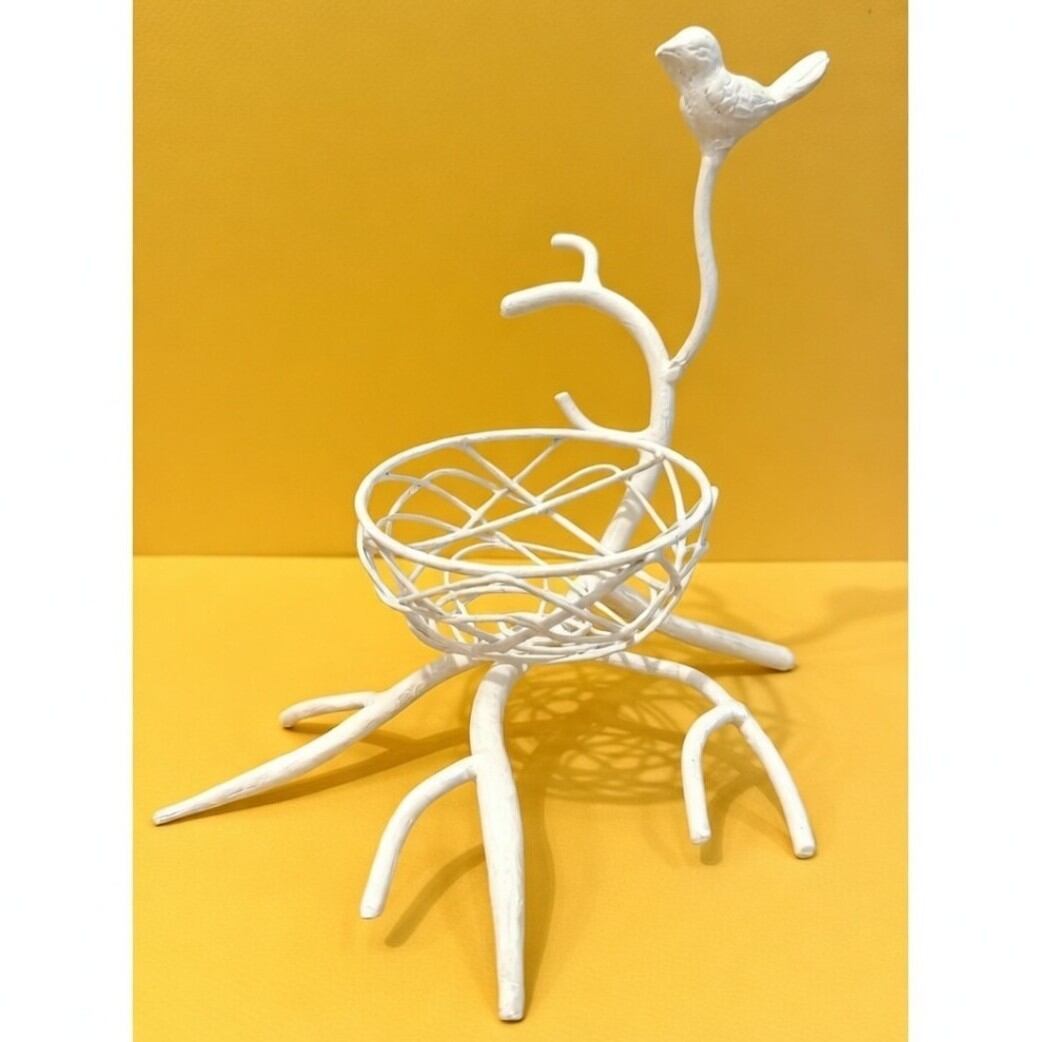色合いが美しい小鳥の小物入れです。小物入れの部分が鳥の巣のようなデザインがシルエットがお洒落。