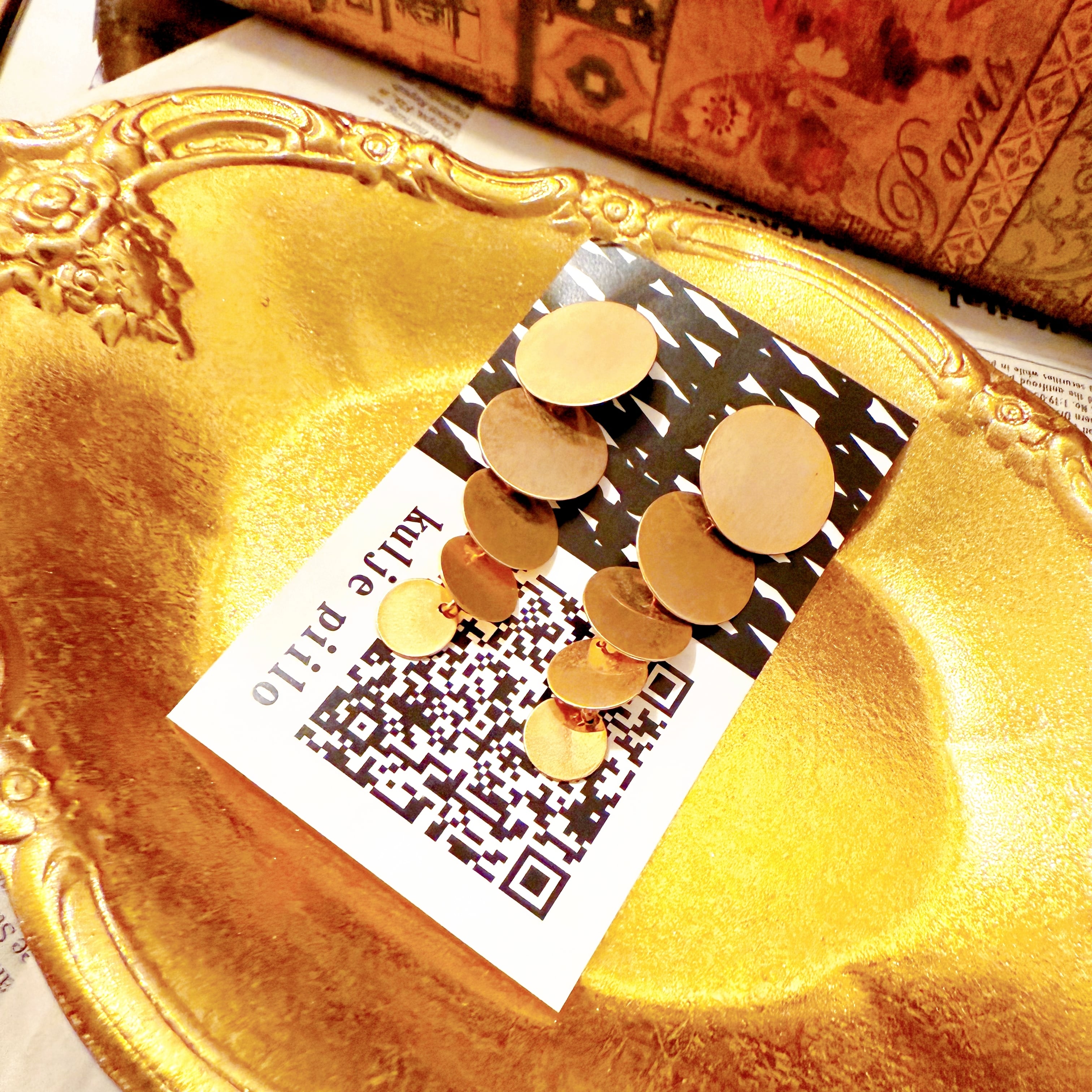 ゆらゆら揺れる丸いメタルデザインが特徴なおおぶりのピアスです。見た目よりも軽い!!