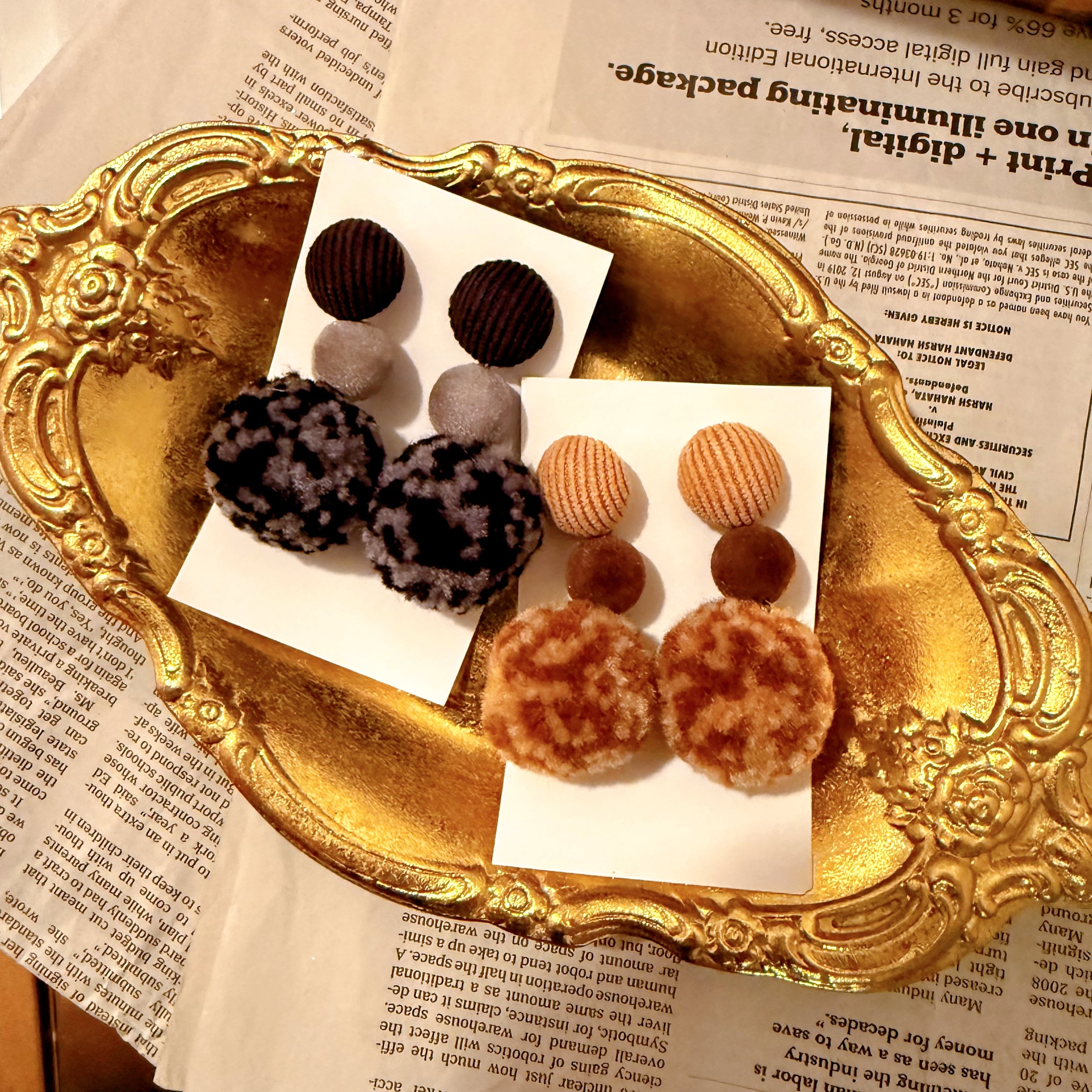 ゆらゆら揺れる丸いもこもこデザインが特徴なおおぶりのピアスです。見た目よりも軽い!!