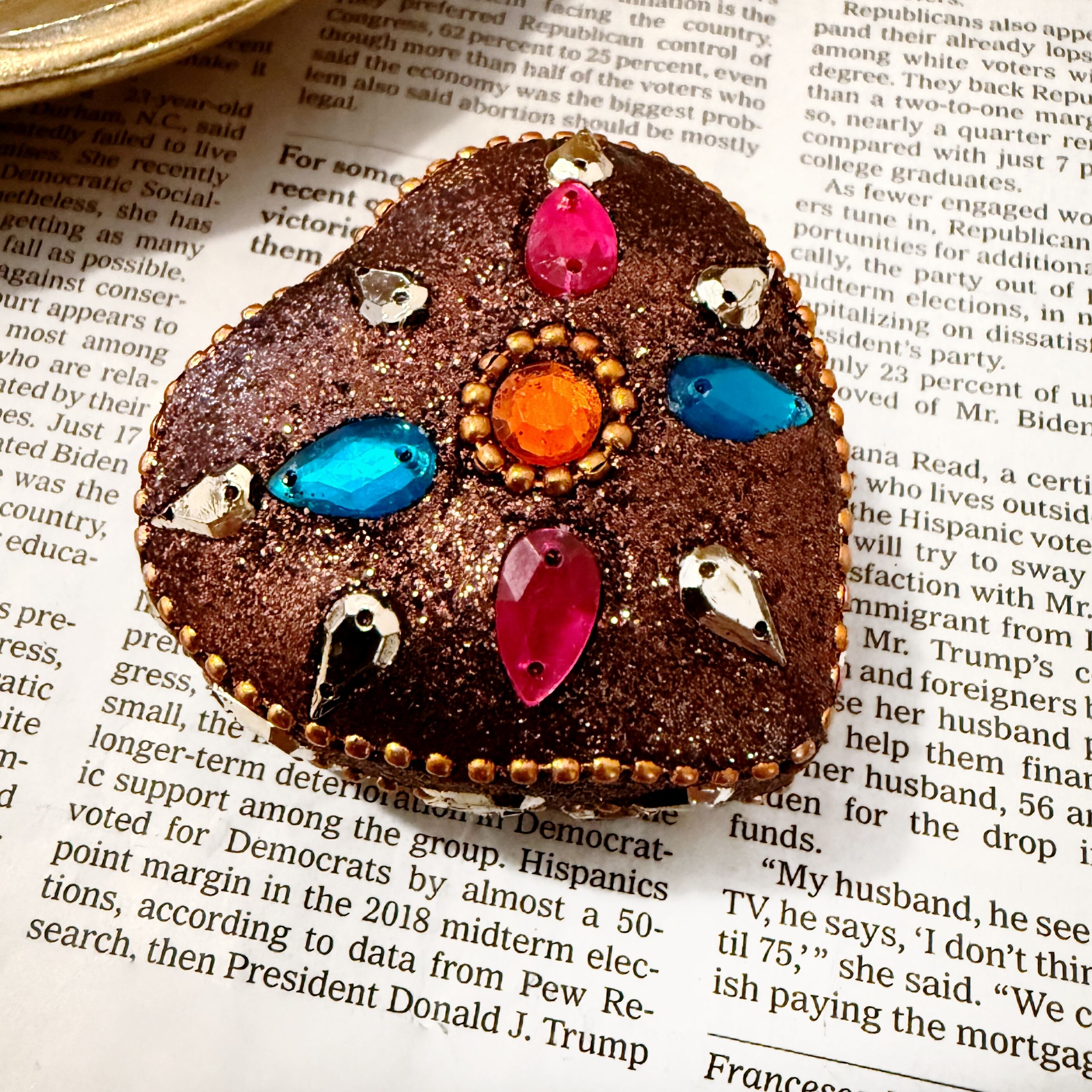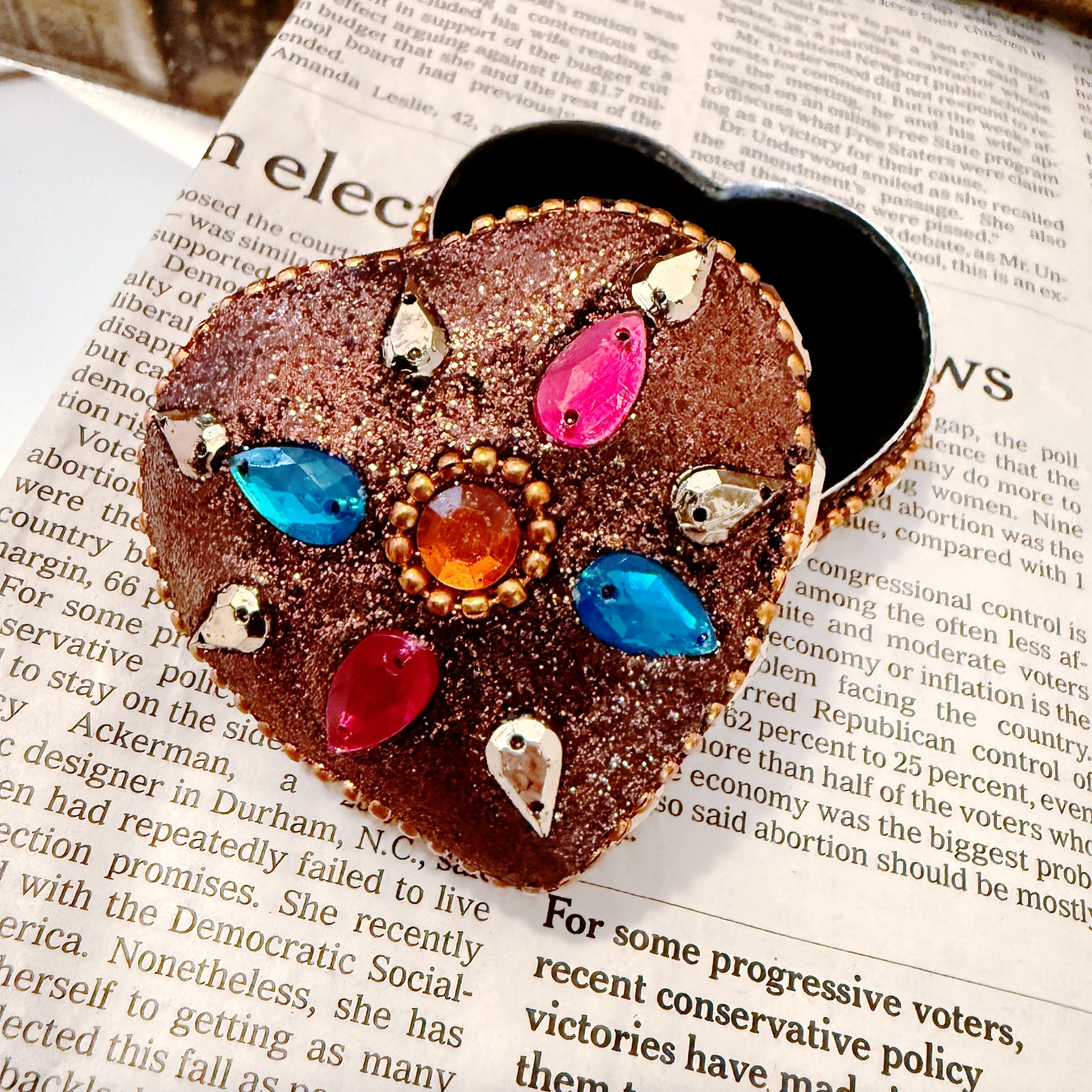 キラキラのラメにビーズを散りばめたとってもキュートなハート型の小物入れです。