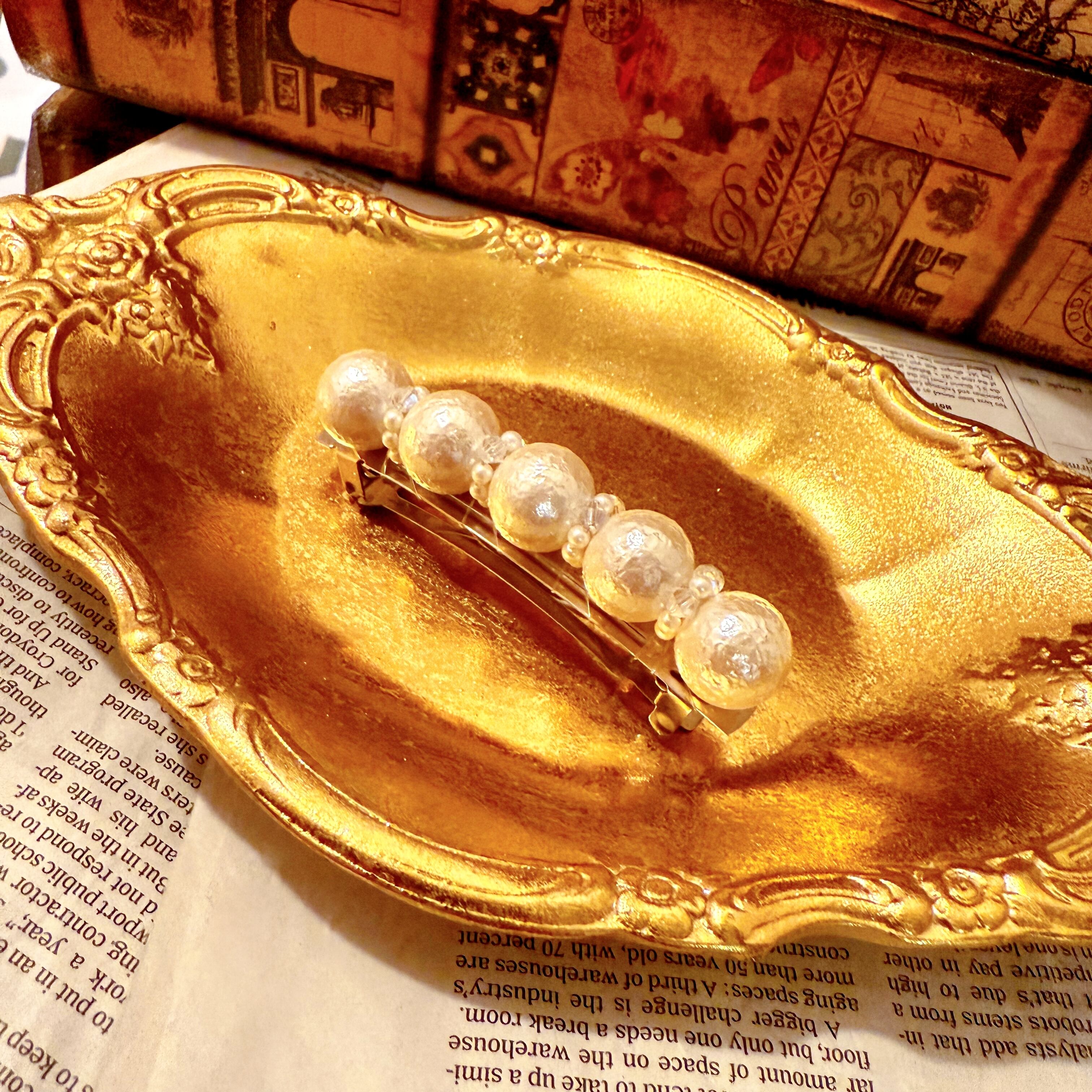 【パール調】【日本製】シュリンクパールとカットビーズのバレッタ