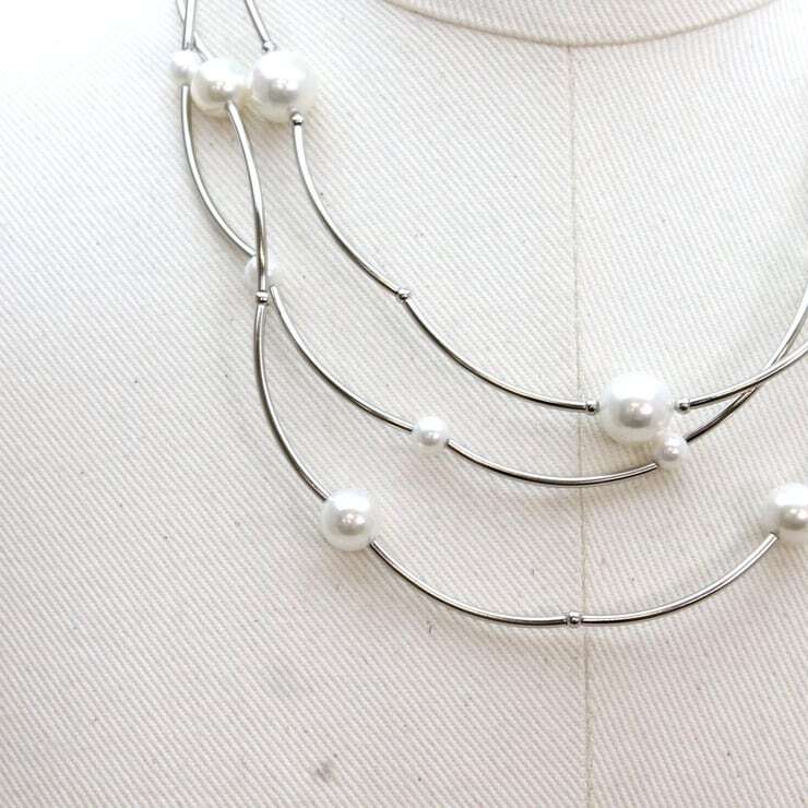 3連パールネックレス【結婚式お呼ばれアクセサリー】/送料220円全国一律