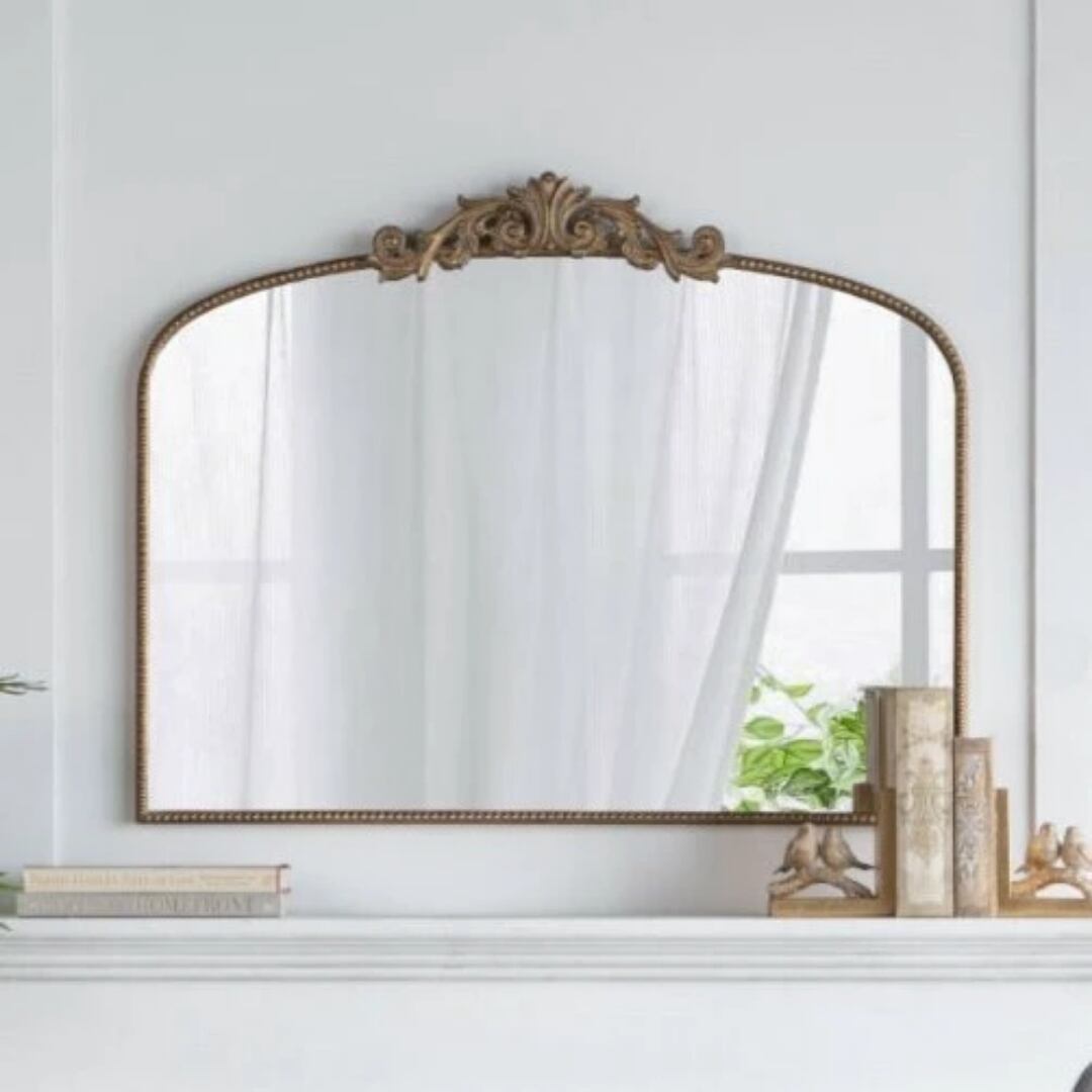 バロック様式の繊細な装飾が施されたこのミラーは、クラシックでありながらモダンな要素も持ち合わせ、さまざまなスタイルのインテリアにマッチします。