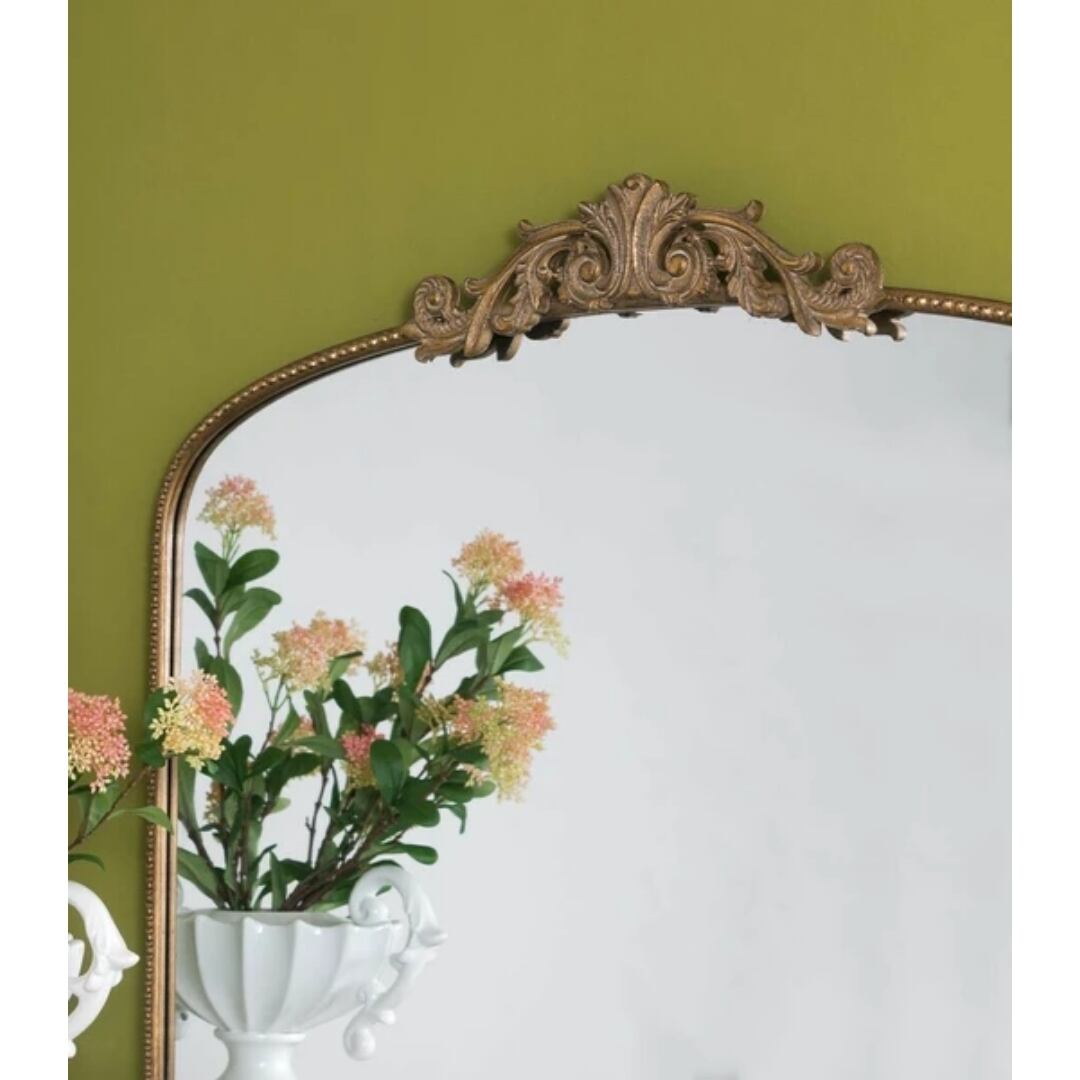 洗練されたデザインと美しいバロック調の装飾が特徴のミラー。