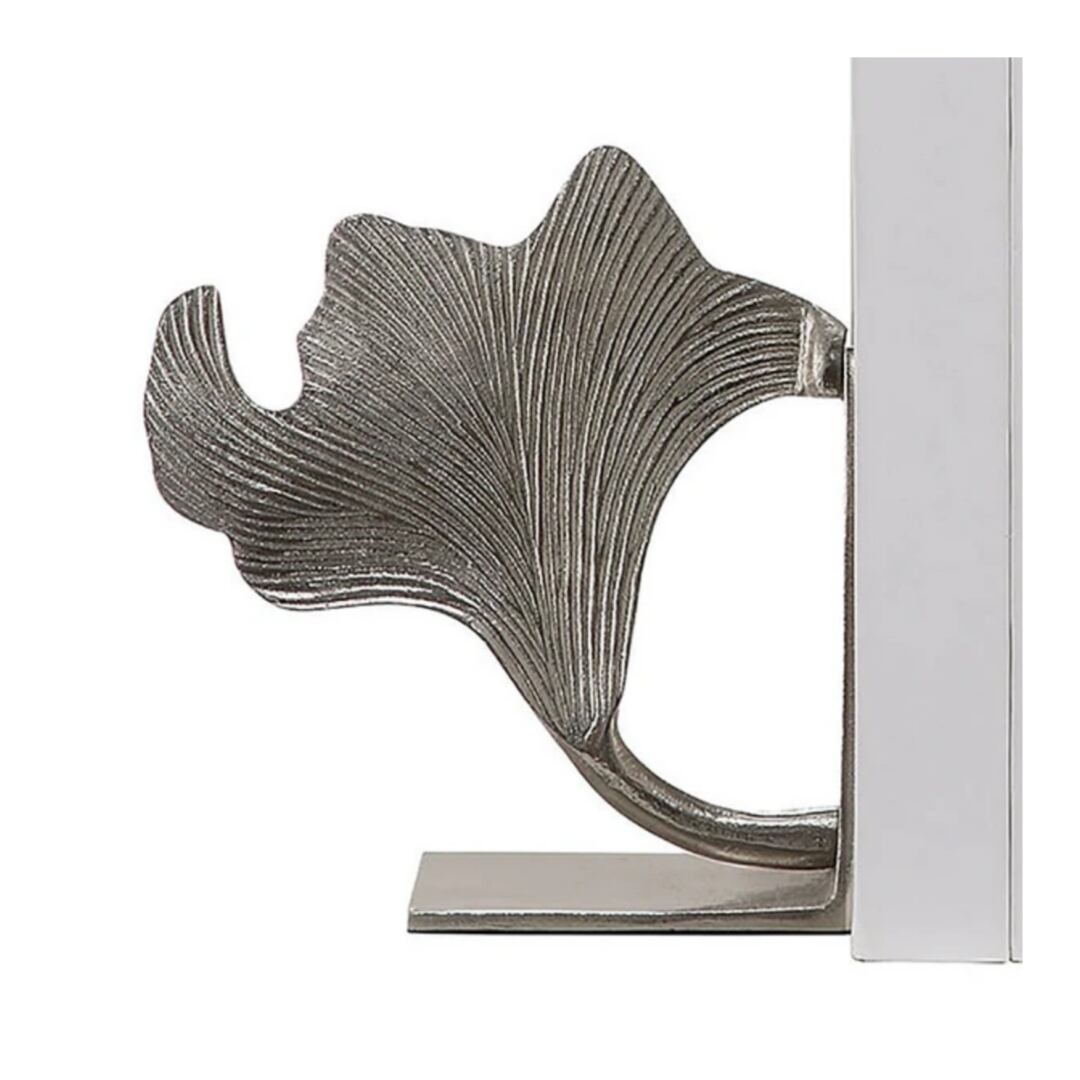 シルバー ジャンゴ ブックエンド/ブックスタンド イチョウ ブックエンド 本立て イチョウ オブジェ 置物