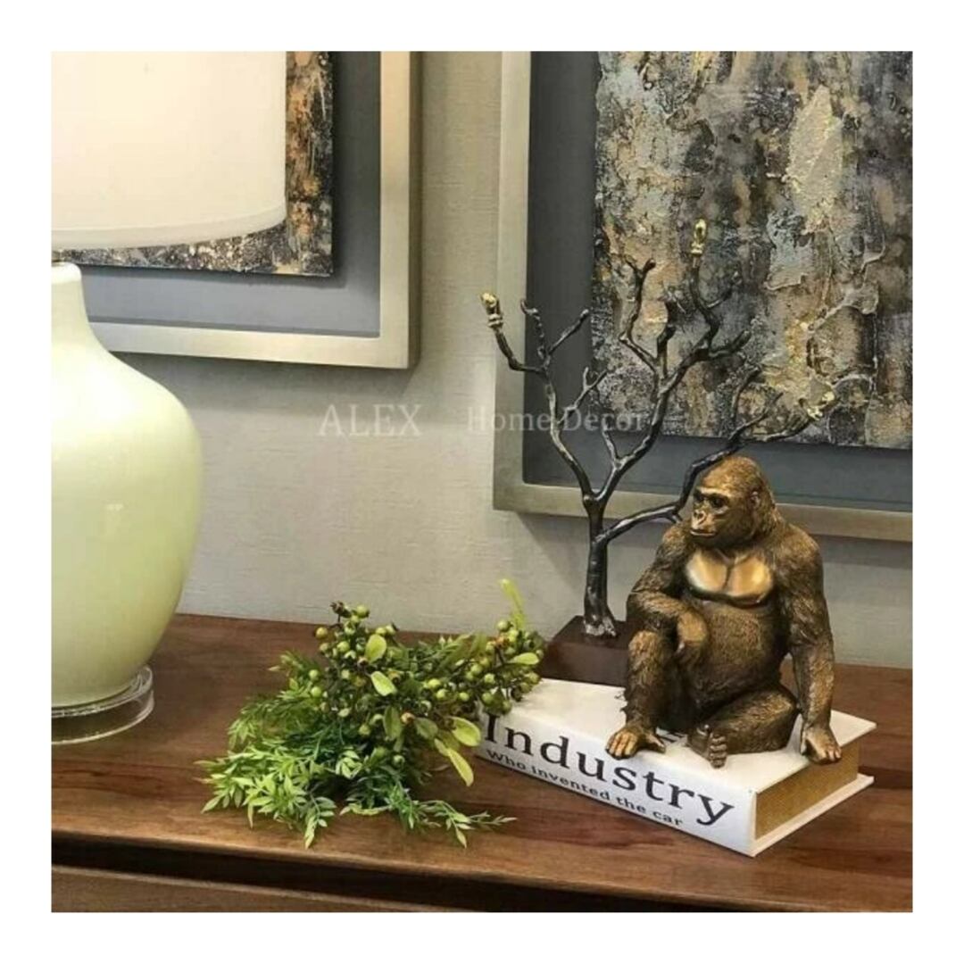ユニークで個性的な存在感を持つ、アンティークゴールド仕上げのゴリラの置物。