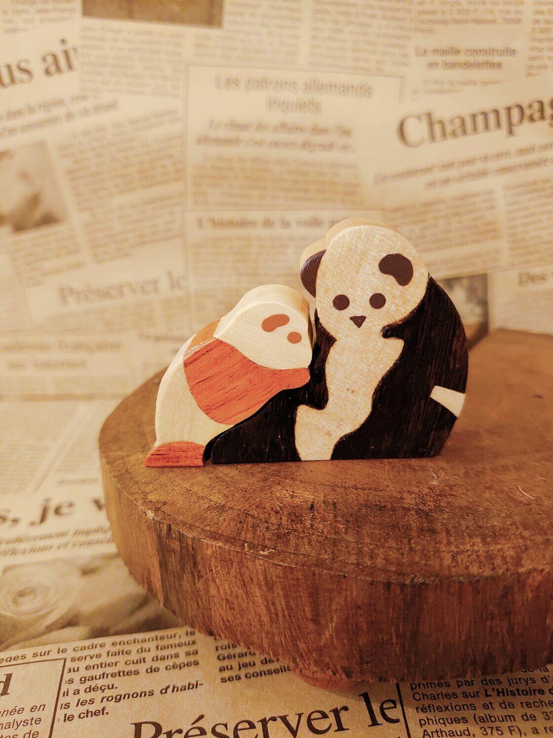 食卓を彩るかわいらしいパンダの親子をご家族や友人と共に楽しみませんか?天然木の優しい風合いと、ほっこりとした癒やしのデザインで、食事の時間が一段と心地よくなりますよ。