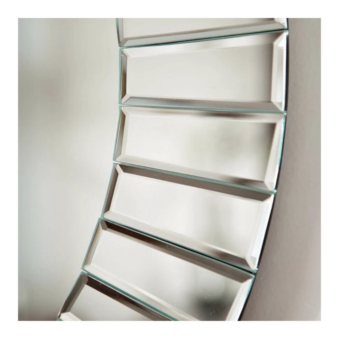 縁全体に細やかなミラーガラスを贅沢にあしらったフレームデザインは、見る角度によって美しく光を反射し、空間に奥行きと洗練をプラス。