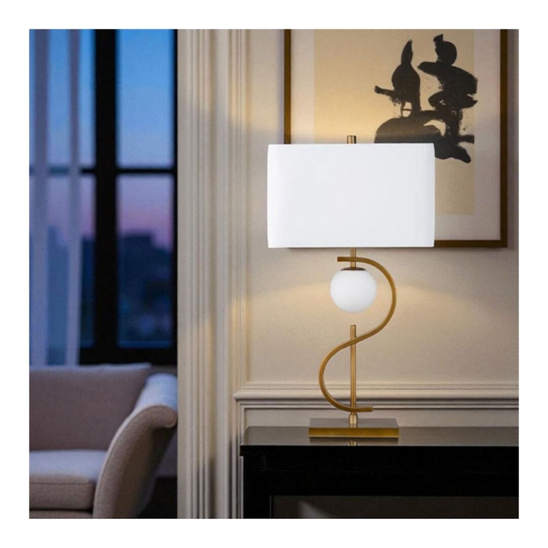 美しい曲線デザインとスクエアシェードが洗練された雰囲気を演出し、リビングやベッドサイド、オフィスのデスクにもぴったり。