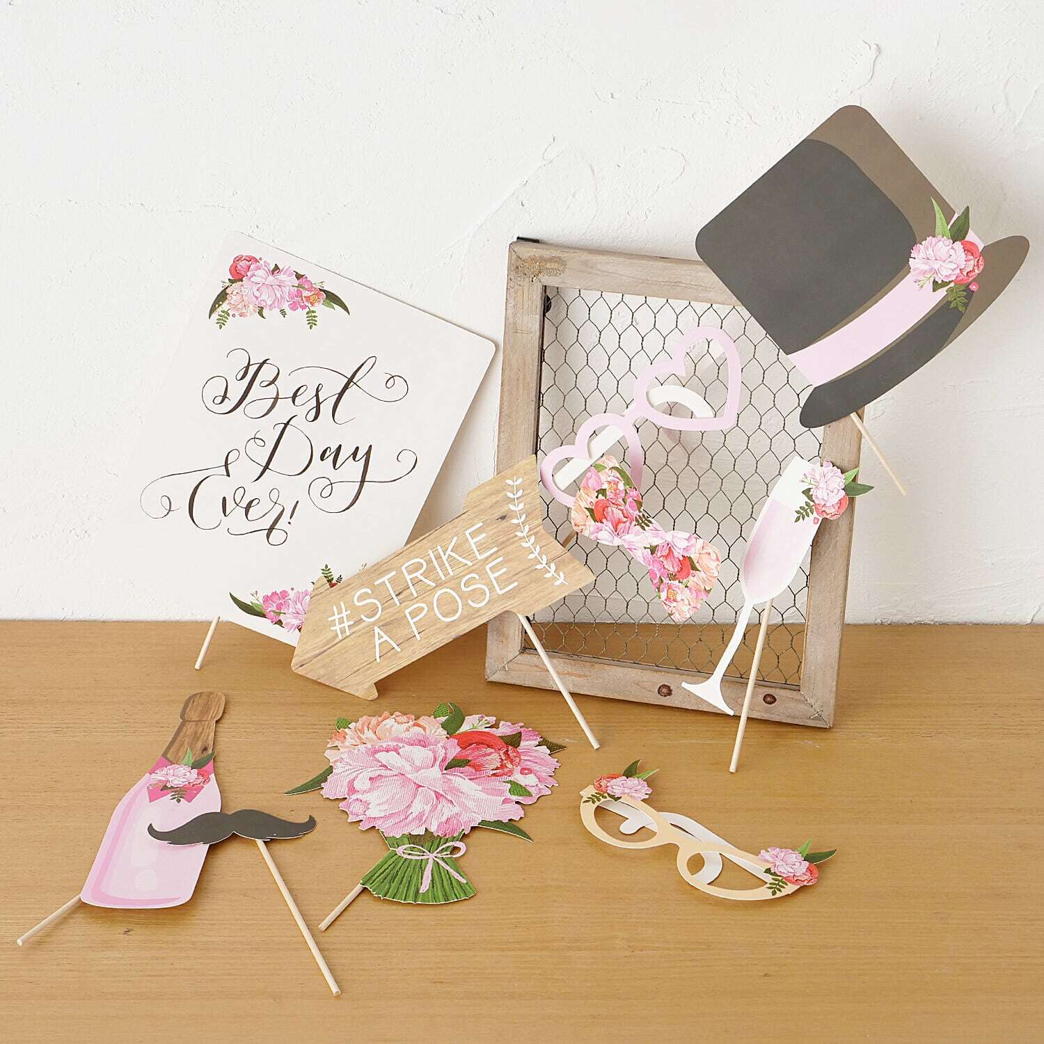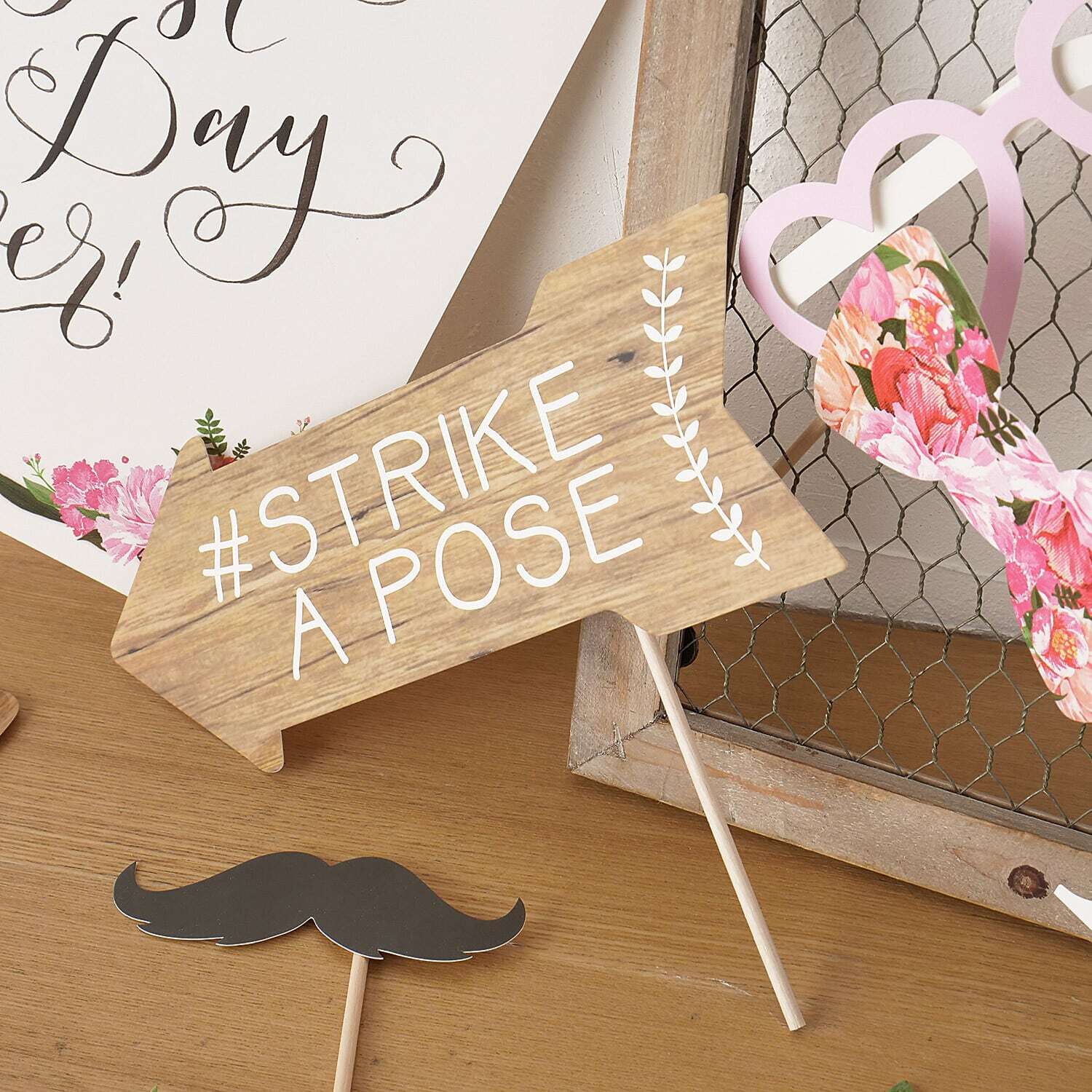 フォトジェニックな1枚が撮れること間違いなしのフォトブースプロップス。バラエティ豊かなモチーフを10点セットでお届けします。結婚式のフォトブースに置いておけば、ウィットに富んだ写真が撮れることでしょう。