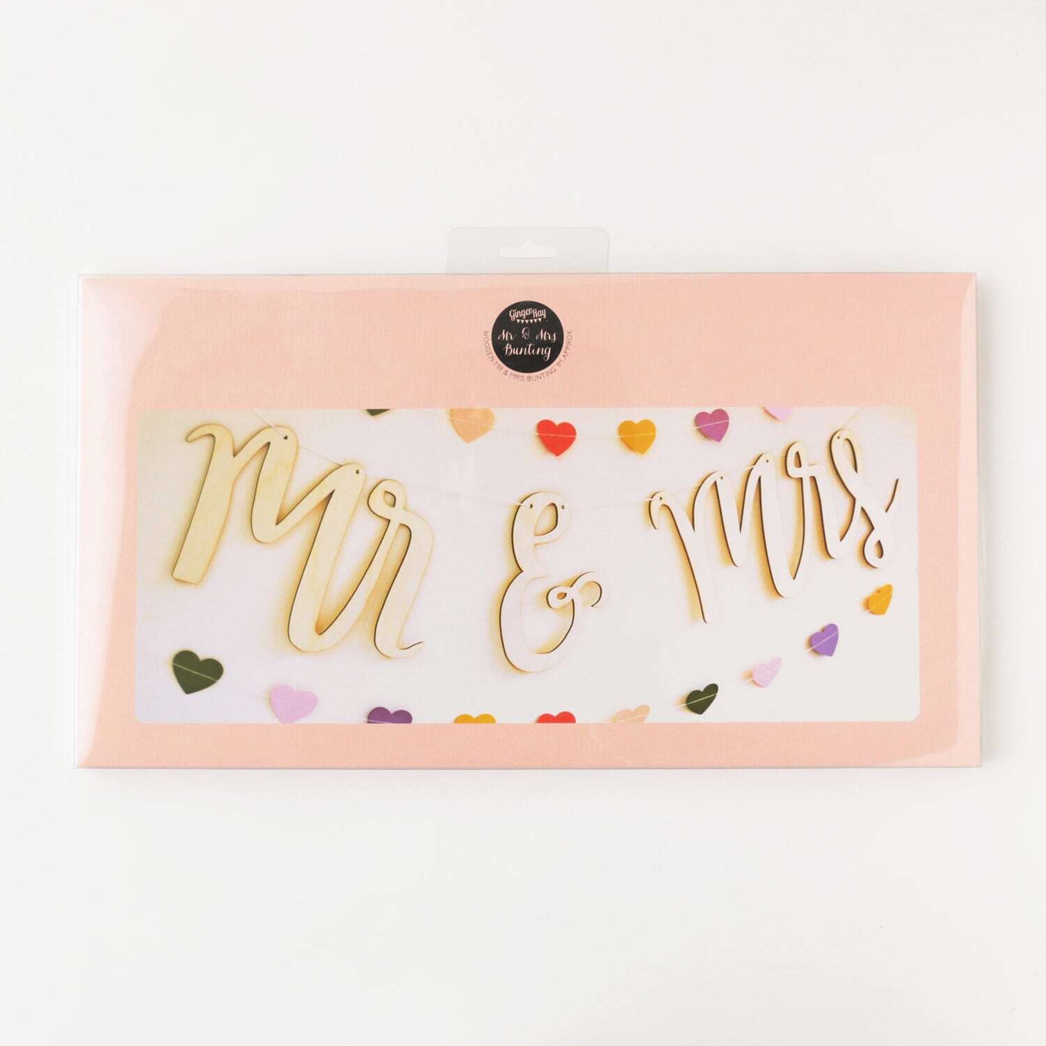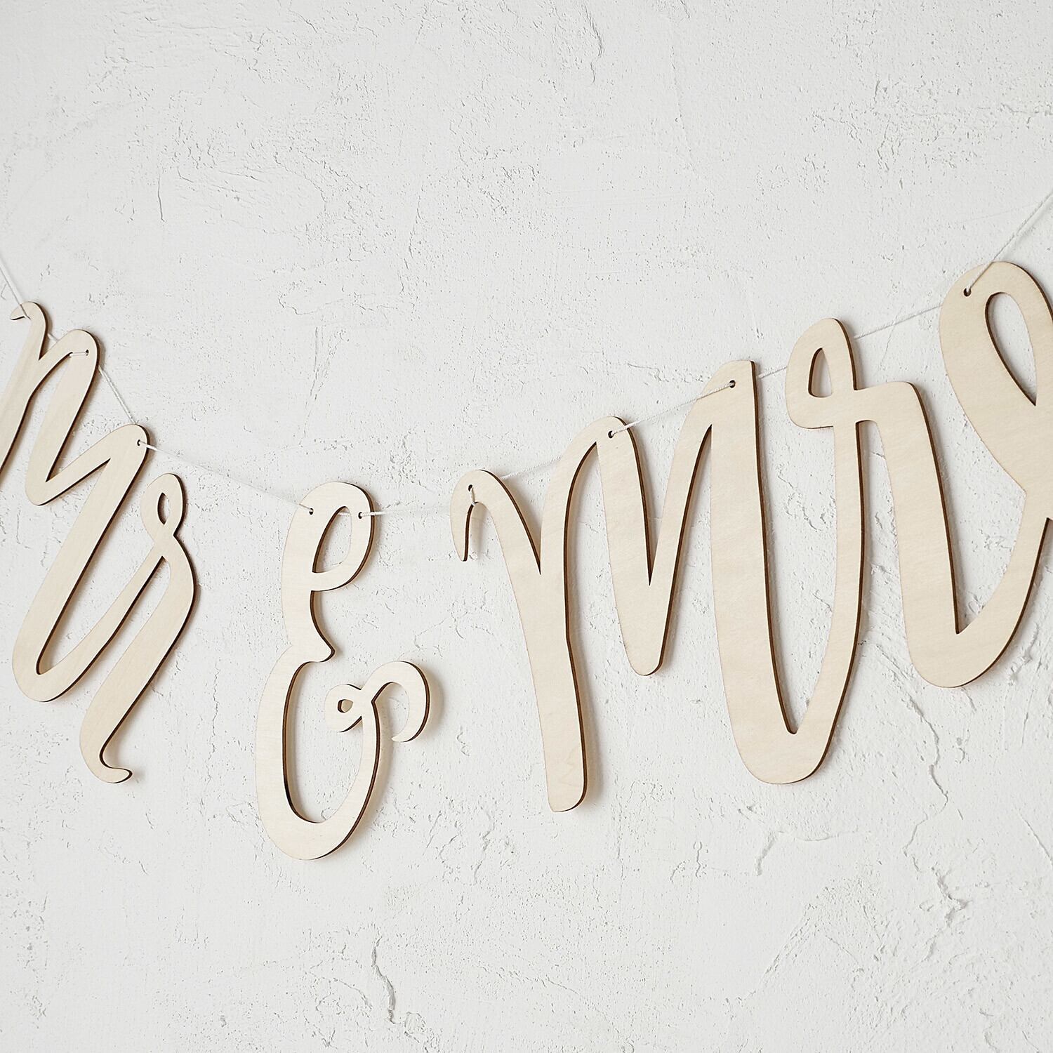 「Mr And Mrs」をかたどったウッドバンティング。お部屋のインテリアには勿論、特別な1日である結婚式で、夫婦となる2人を祝福するためのとっておきのアイテムです。会場のエントランスやメインテーブルなどに飾りつけてハッピームードあふれる空間に。ウッド素材なのでお好みでカラーリングやラメをつけたりセルフアレンジも楽しめます。