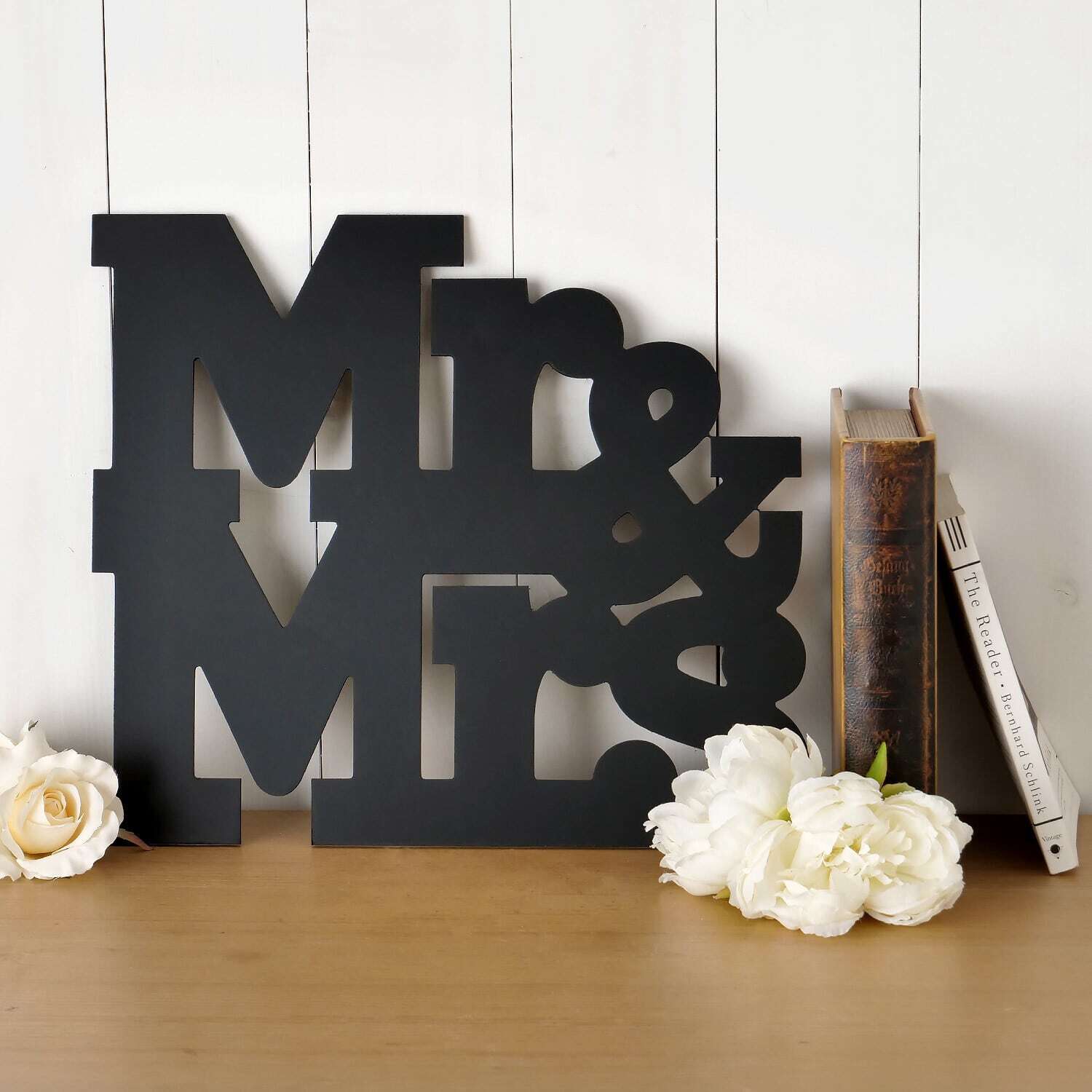 「Mr&Mrs」をかたどったチョークボードのゲストブック