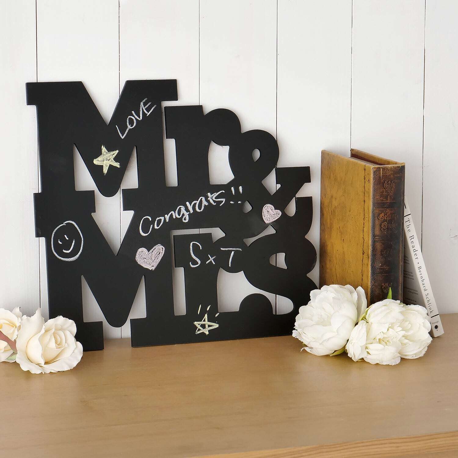 「Mr&Mrs」をかたどったチョークボードのゲストブックは、ノーマルでは物足りない2人にぴったりお部屋のインテリアにはもちろん、結婚式やホームパーティーなどで招待したゲストに名前やメッセージを書き込んでもらい、世界にひとつだけのゲストブックを作り上げましょう。式が終われば、インテリアとしてお部屋や玄関に飾ってもおしゃれ。