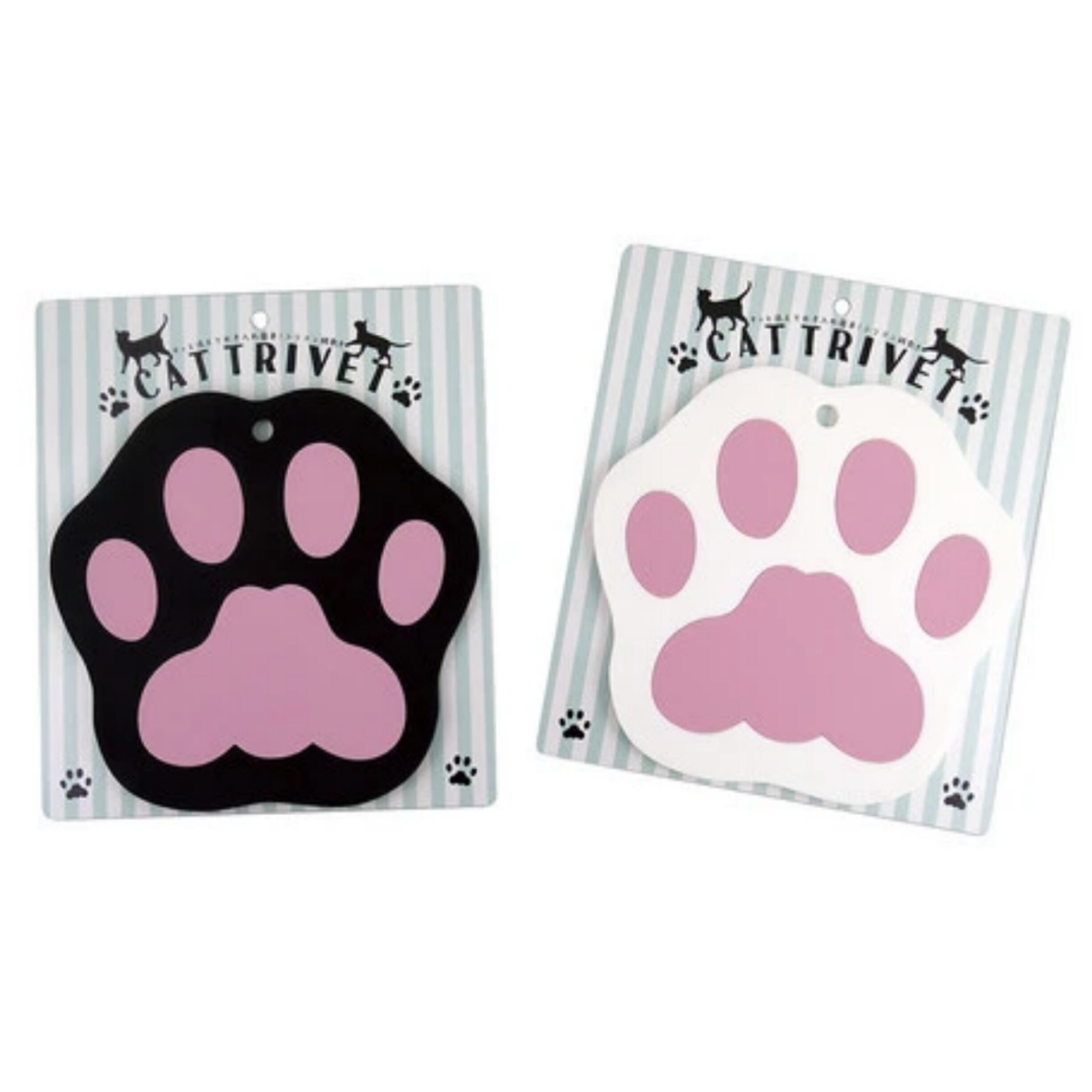 キュートなネコ肉球型が、かわいい二種類のシリコン製鍋敷きです。