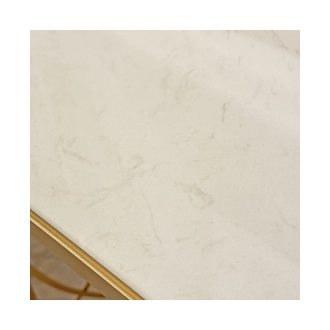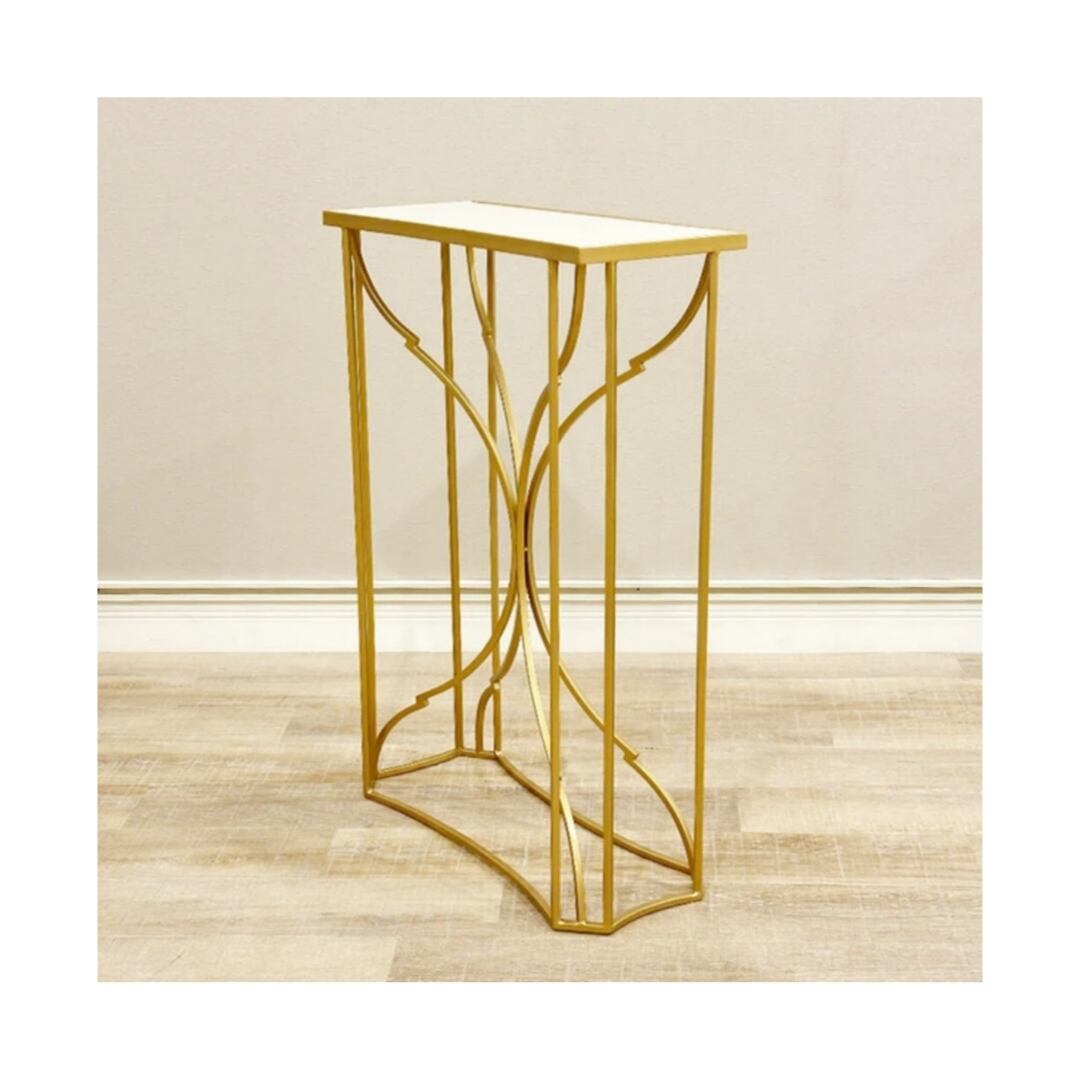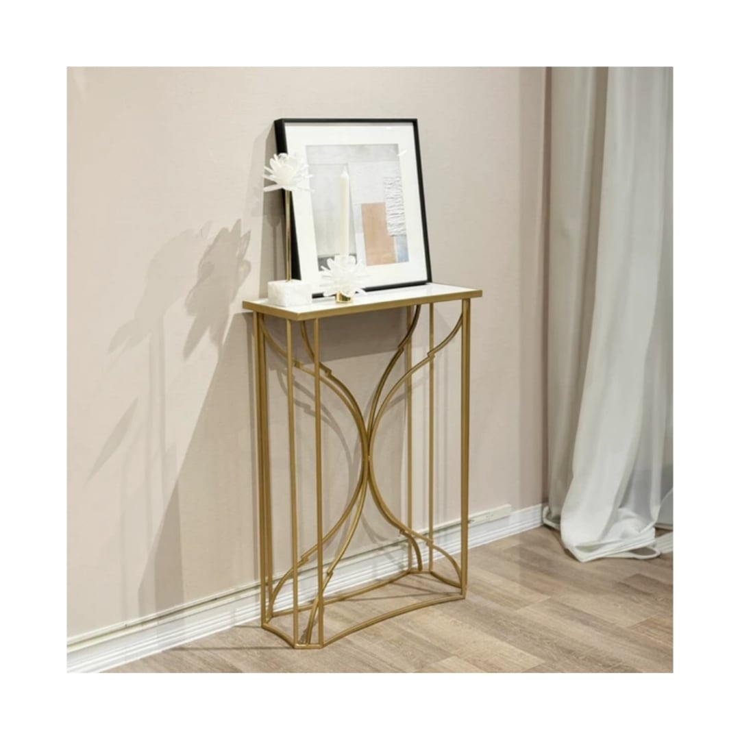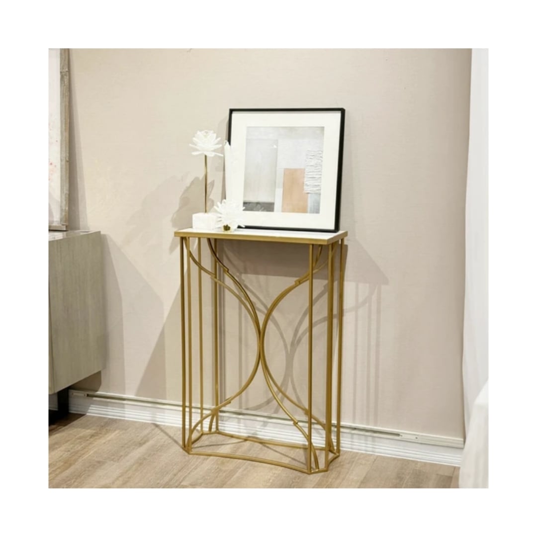 アンティーク調のゴールドフレームと人造大理石の天板が高級感漂うモダンなコンソールテーブルです。