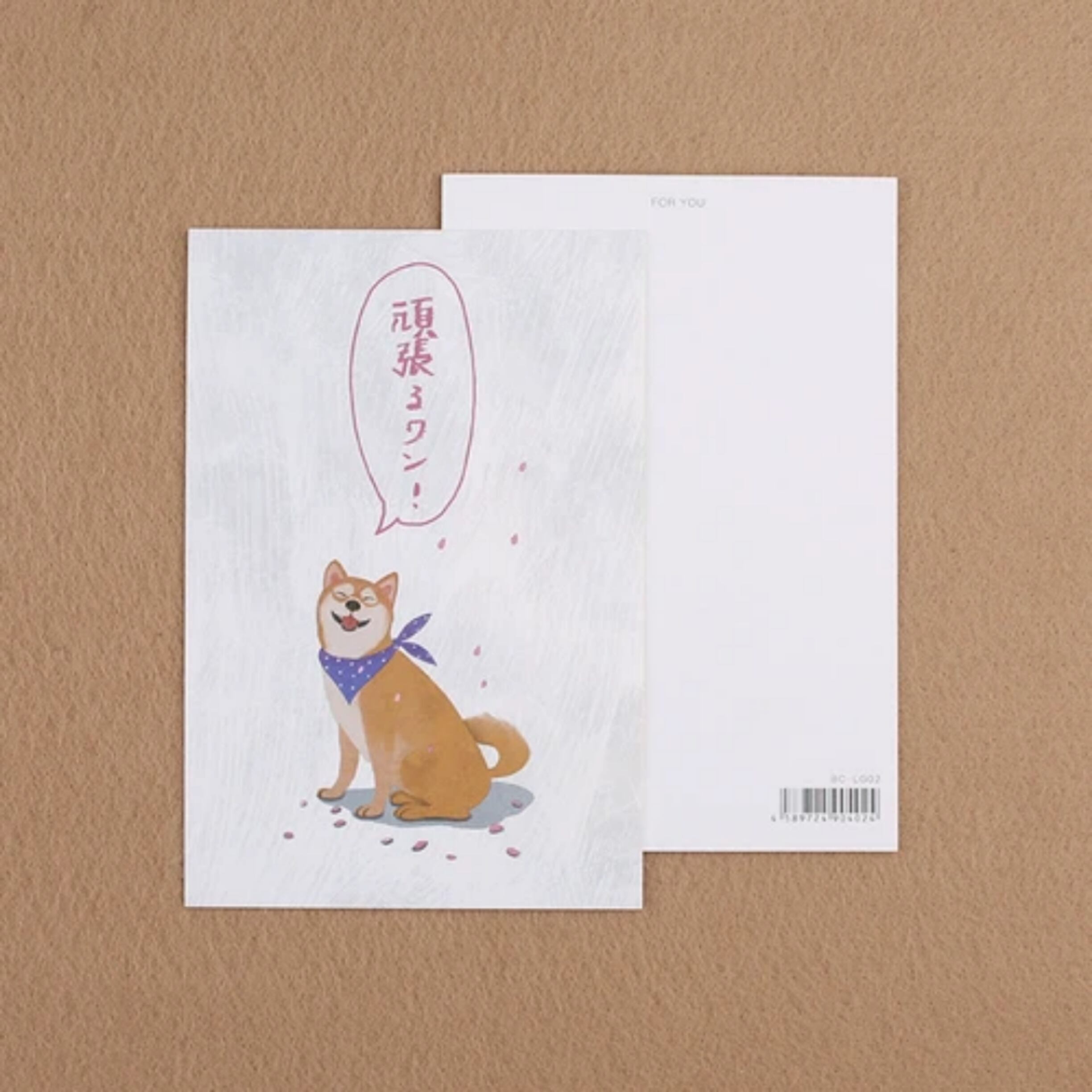 柴犬が「頑張るワン!」と声をかけてくれる、心温まるポストカードです。このユニークなデザインは、友達や大切な人への応援メッセージとして最適です。遠くにいる大切な人にも、さらに元気を届けることができます。