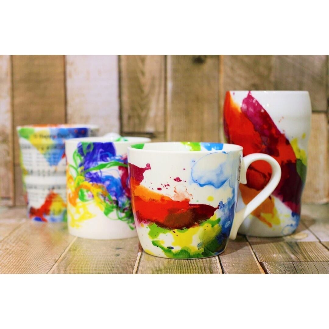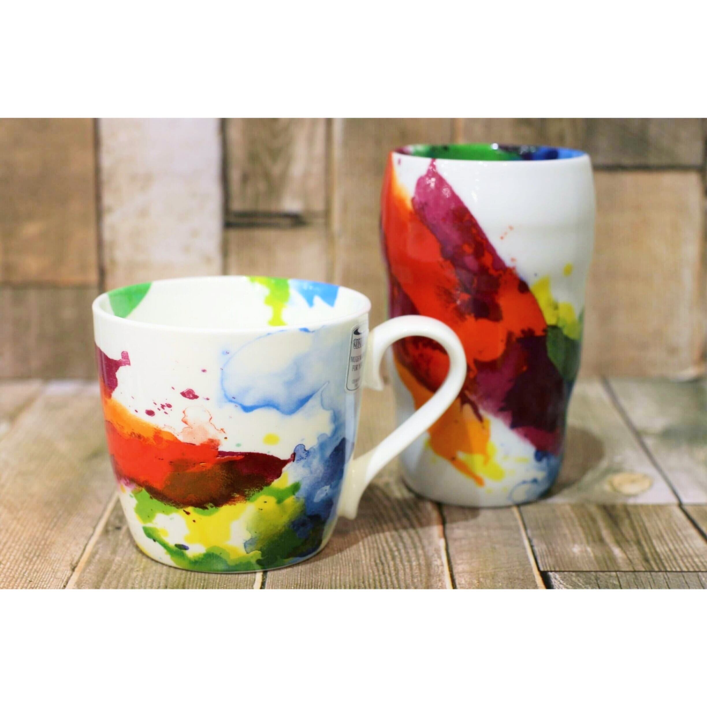 こちらのマグカップシリーズは、水彩絵具が織りなす流動的な色彩が特徴的で、キャンバス上に広がる無数の色彩の交錯を思わせるデザインです。