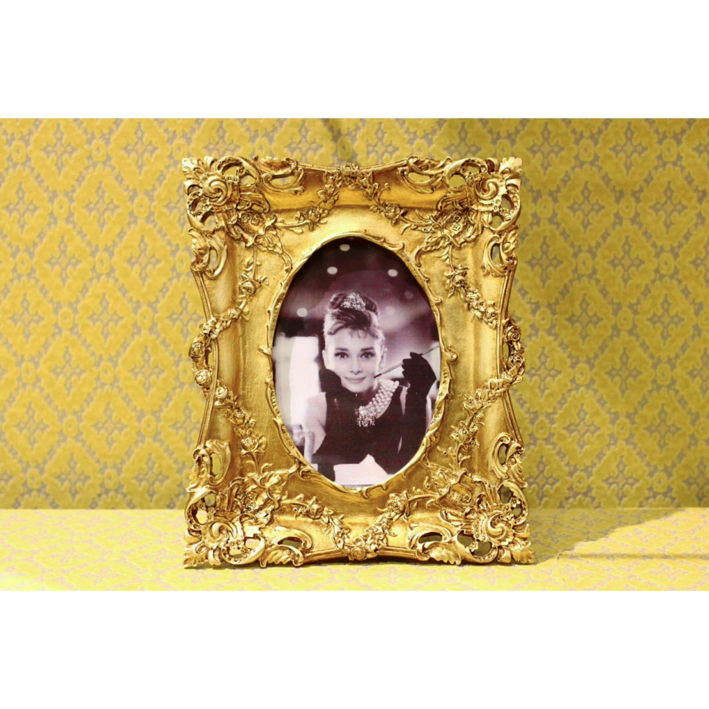 細かな薔薇が散りばめられた上品なデザインでクラシカルなゴールドカラーが高級感を演出します。お気に入りの写真を飾るだけで、インテリアが一気に華やかに彩られます。