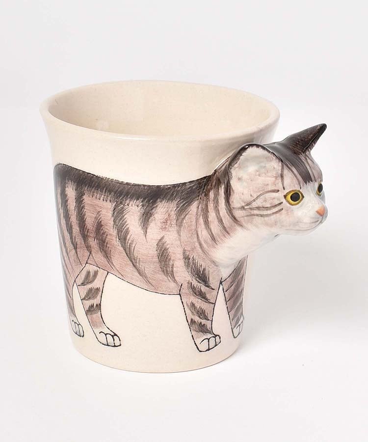 タビーネコのはみ出し顔のマグカップ サバトラ猫(アメリカンショートヘア)【電子レンジ/食洗機対応】/浜松雑貨屋 C0pernicus