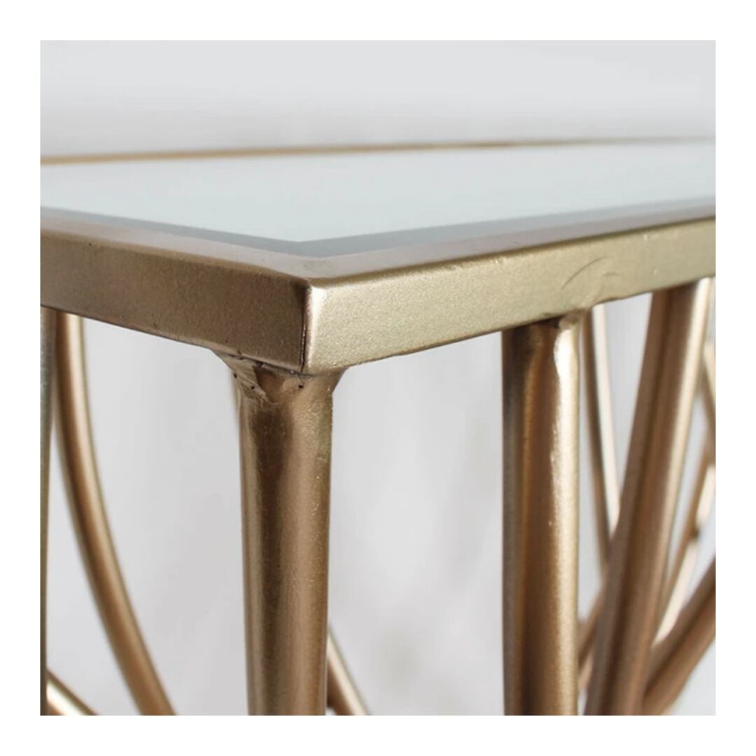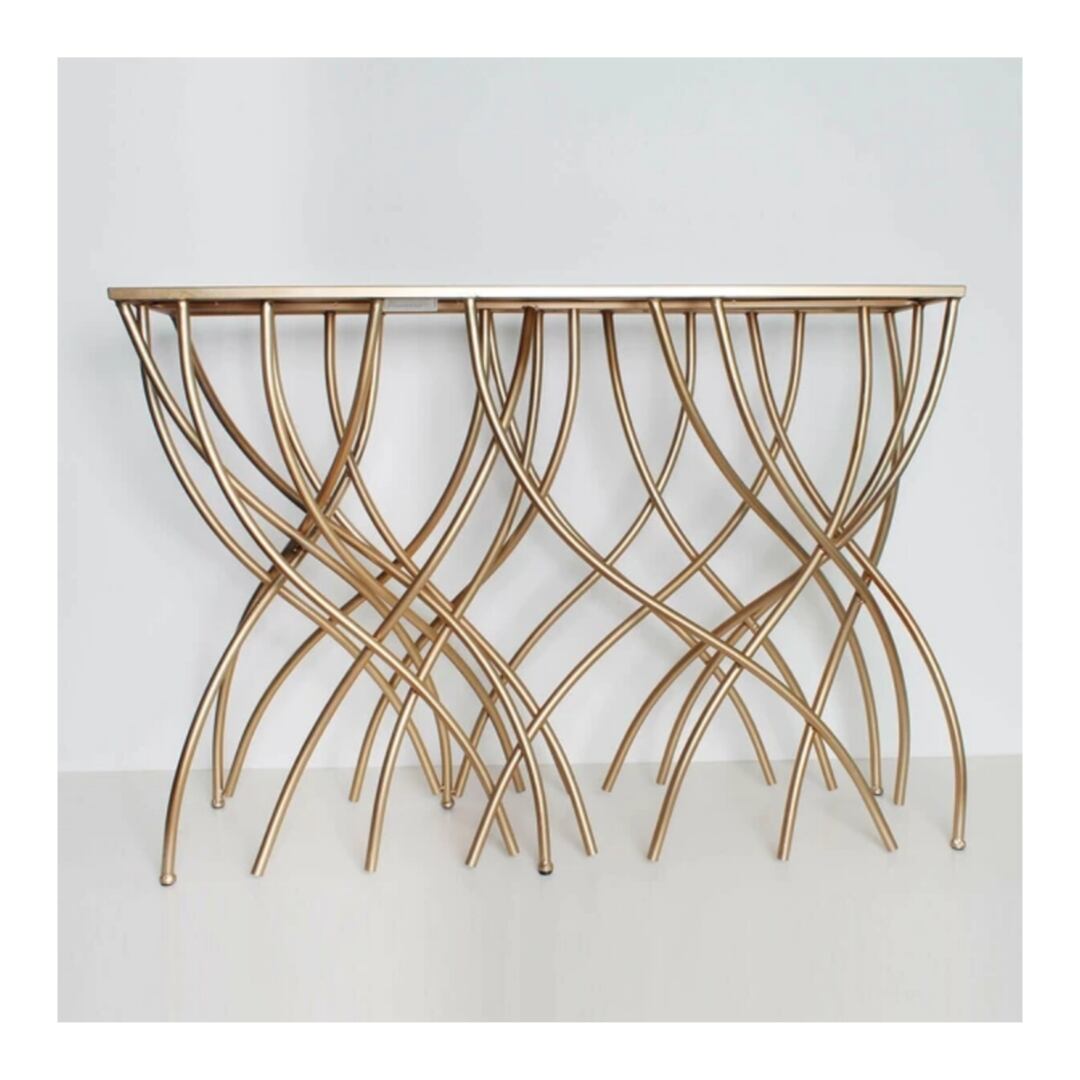 ゴールドフレームのスタンド部分がいくつも重なった美しいコンソールテーブル。